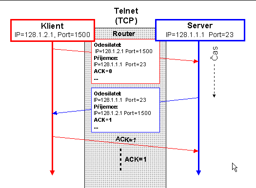 Budeme předpokládat, že klient je na vnitřní síti a server v Internetu.