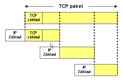Všimněte si, že např. z jednoho TCP paketu mohou vzniknout tři IP-datagramy.