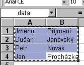 Tlačítkem Browse zadejte cestu k souboru (jmena.xls).