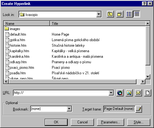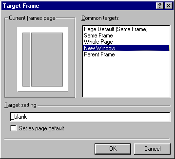 Ve FrontPage k tomu slouží tlačítko Target frame (ťuká se na tu šipčičku).