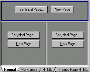 Velké šedé obdélníky jsou rámy, zatím bez obsahu. Obsah se do nich dá vložit tlačítkem Set Initial Page -- nastavení startovní stránky, která se bude v rámu zobrazovat. Říká se jí startovní (inicializační), protože se do rámu načte jako první, ale později se v tom rámu může díky odkazům objevit stránka jiná.