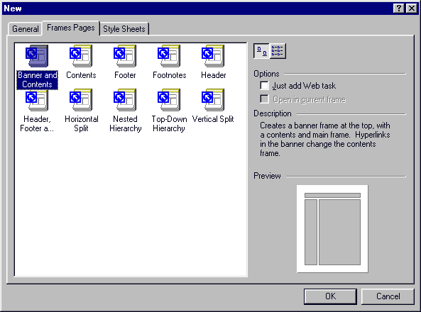 Dělá se z jiné nabídky: File - New - Page. V dialogu je druhá karta Frames Pages.