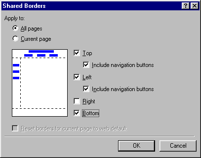 Při zakládání sdílených okrajů (Shared Borders) nabízí FP automatické vložení banerů do okrajů: