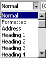 Normálně je tam "Normal", to znamená normální odstavec (tag <p>). FrontPage dává většinu věcí do normálních odstavců. Ale dá se to změnit a vybrat si třeba nadpis druhé úrovně (Heading 2).