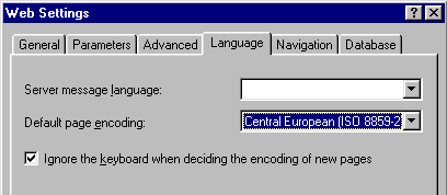 - Default page encoding je velmi důležitá volba. FrontPage podporuje psaní